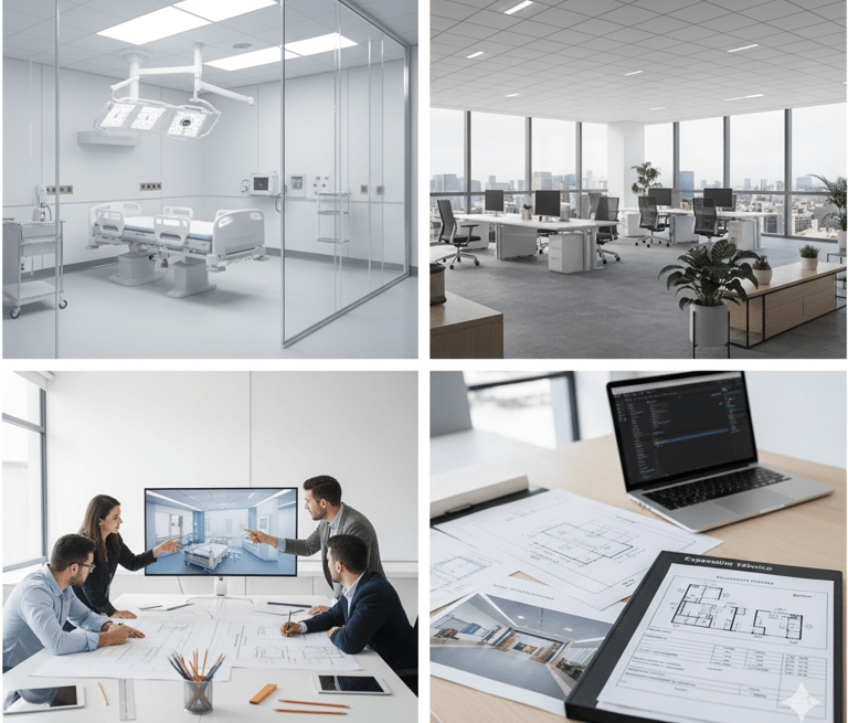 Diseño arquitectónico y remodelación de espacios hospitalarios, administrativos y comerciales.