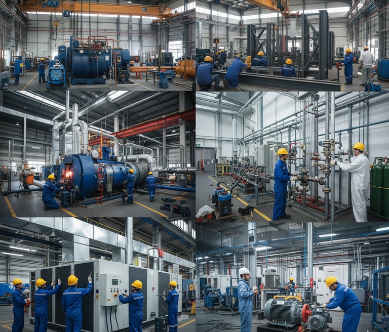 Reparación y puesta en marcha de calderas, sistemas de bombeo y redes hidráulicas.